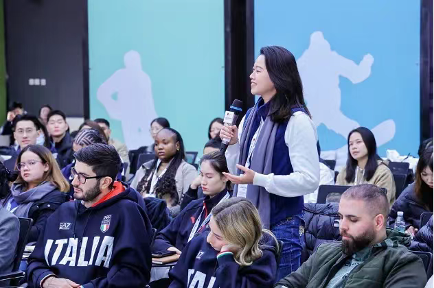 在青年营迎来尾声之际,举办了一场别开生面的中外青年体育论坛暨学习成果分享会。各小组围绕着本届青年营的主题,结合在活动中的学习收获,精心准备了分享报告,并分别派出代表上台展示学习成果,与台下营员们互动交流。
