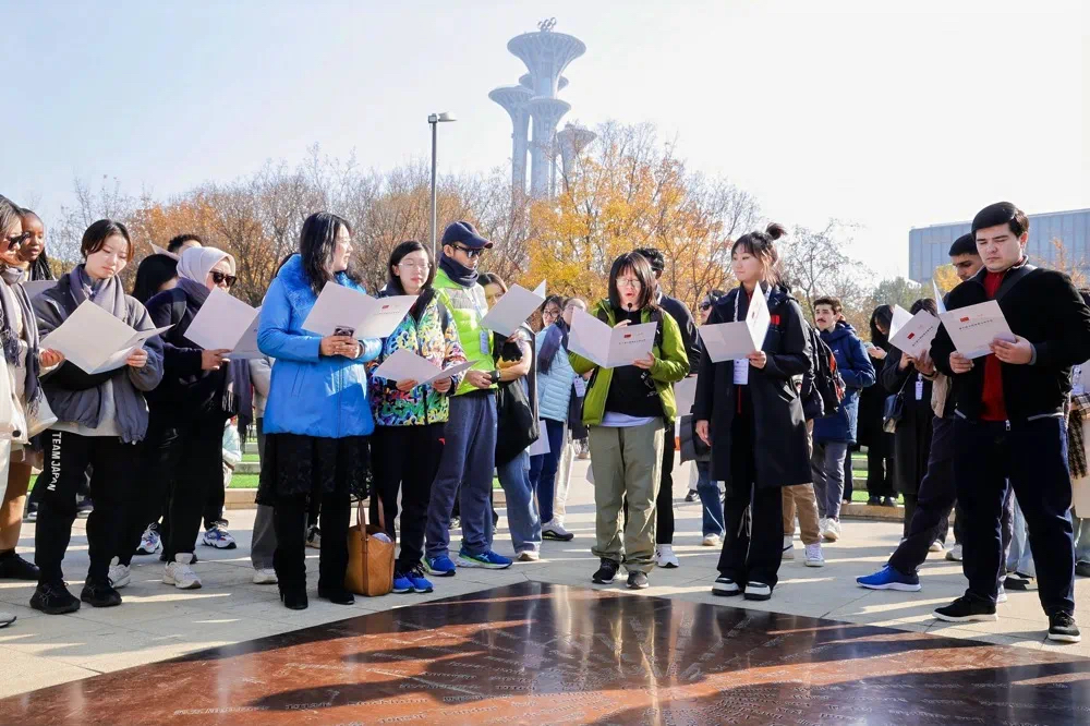 营员们在奥林匹克宣言广场庄严宣誓,深刻体会奥林匹克运动所倡导的核心价值观。