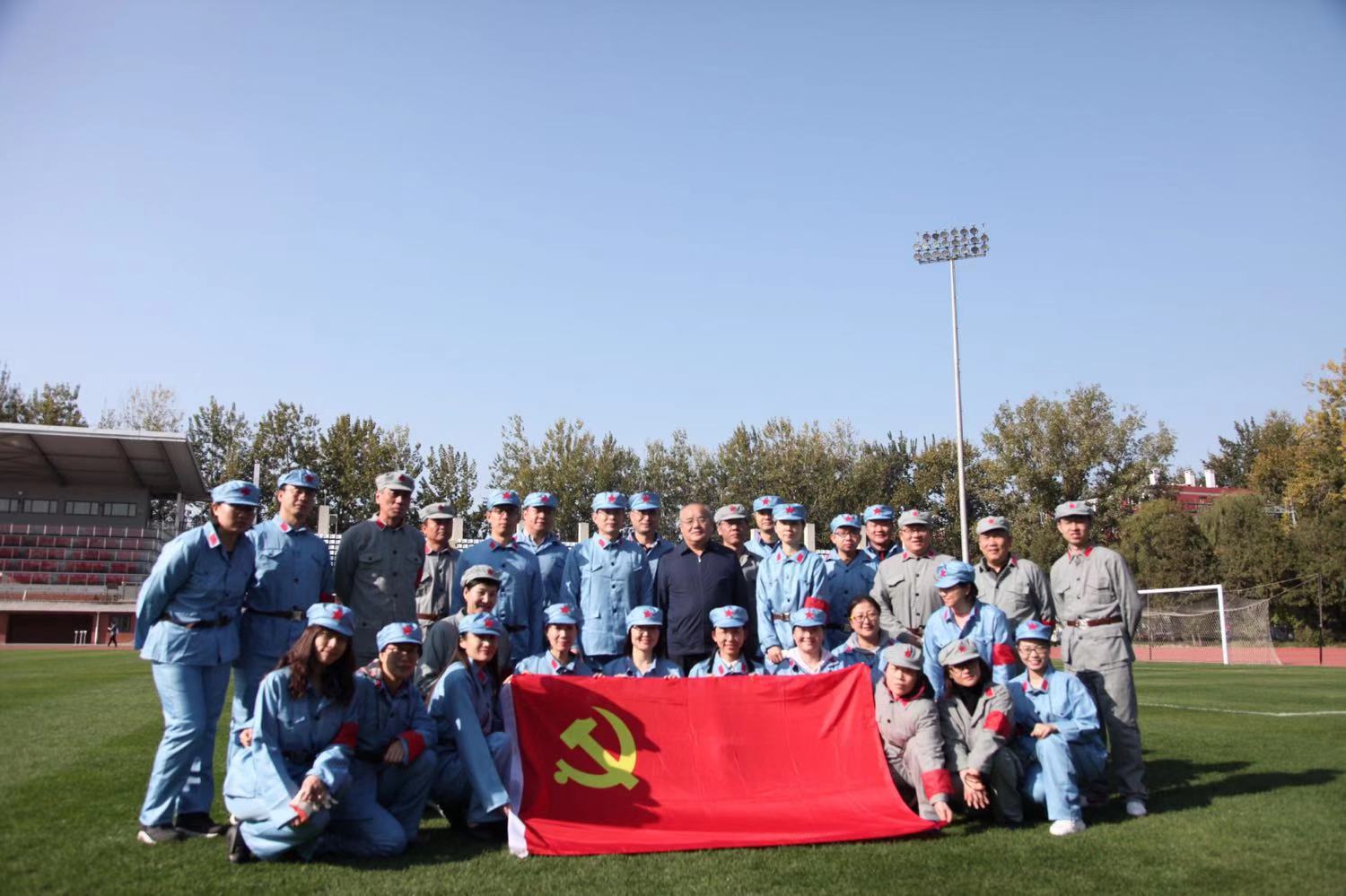 秋高气爽,红色情怀萦绕在北京体育大学英东田径场。2019年11月5日上午,英博体育产业集团直属党支部联合英博体育出版社直属党支部共同举办“不忘初心、牢记使命”特色主题党日活动——“红色运动会”。