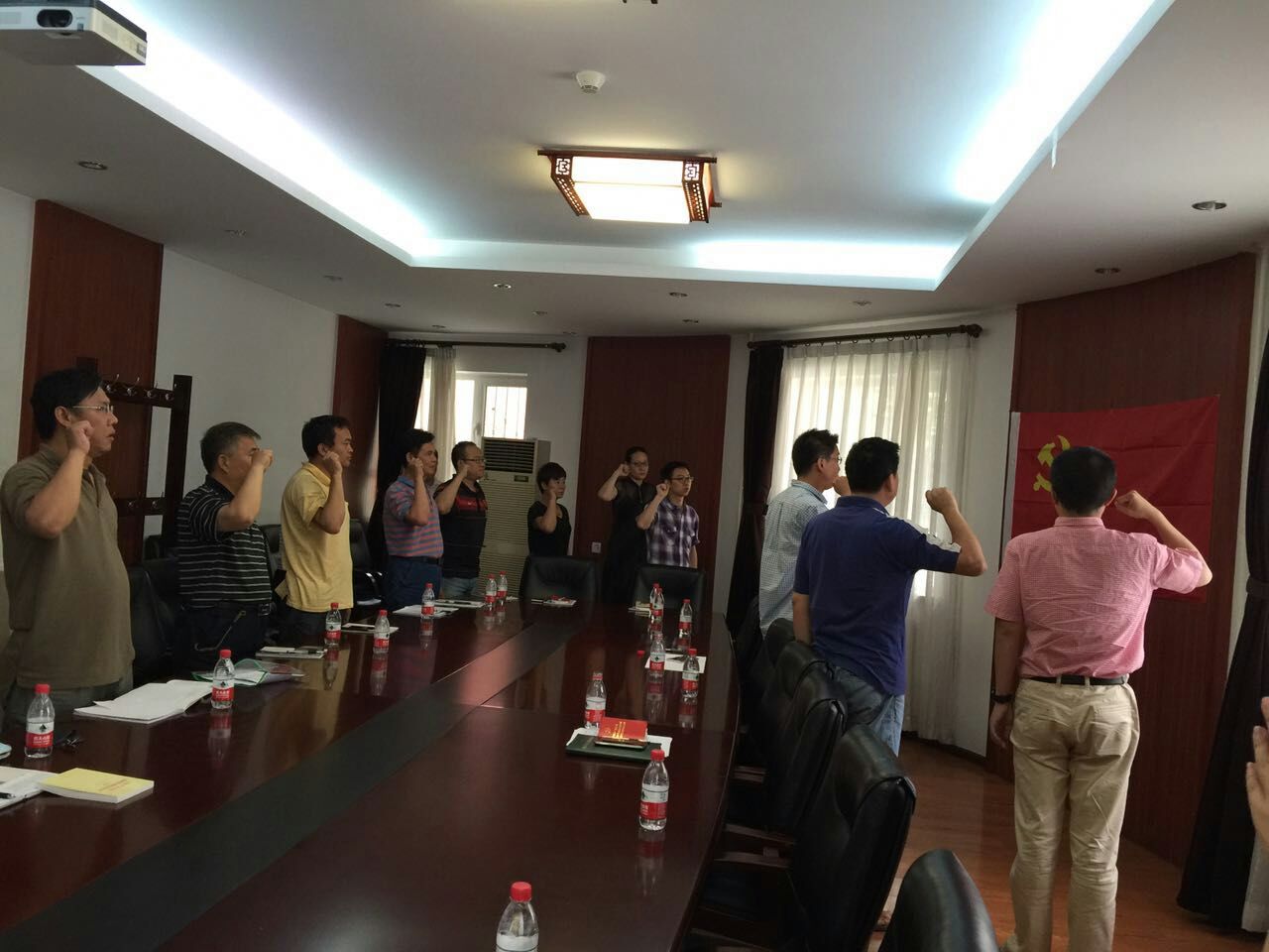 最后,全体党员向党旗宣誓,重温入党誓词。