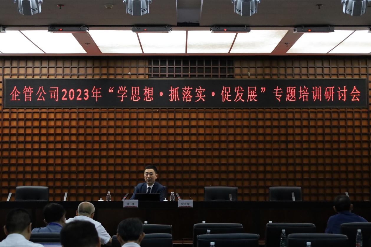 2023年7月12日星期三上午9点,为贯彻好主题教育精神,落实好巡视巡查整改相关任务要求,进一步推进企业法人治理体系专业化、规范化,促进企业改革发展,北京北体大企业管理有限公司在培训中心二层多功能厅举办2023年“学思想·抓落实·促发展”专题培训研讨会。