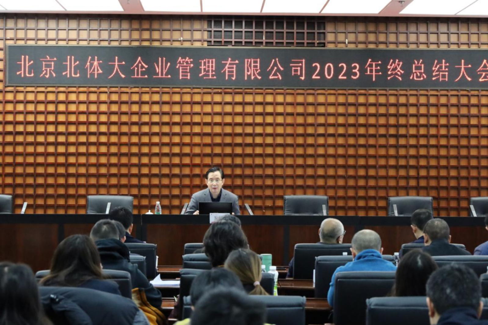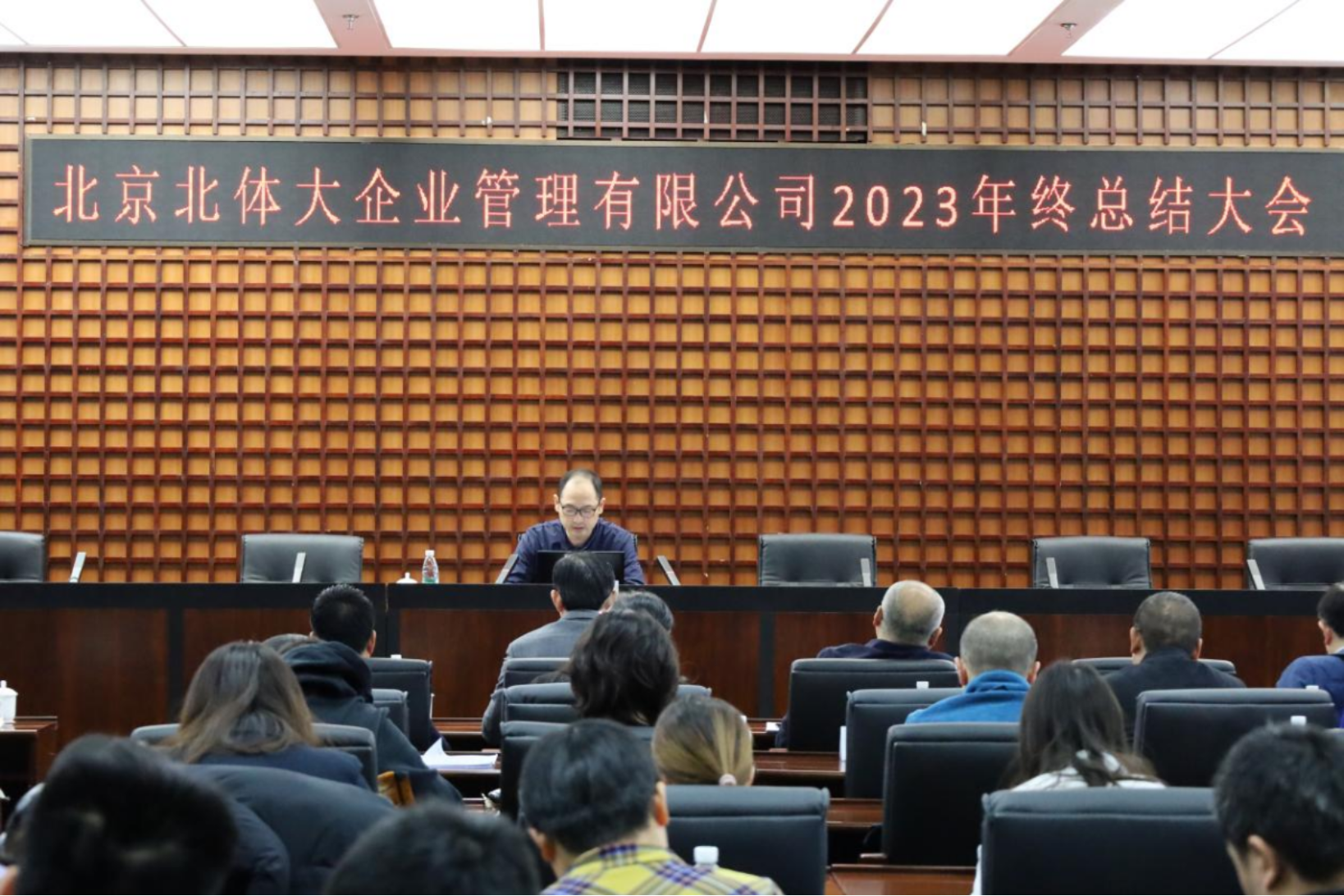 2024年1月26日上午9:00,北京北体大企业管理有限公司2023年度工作总结大会在体育培训中心二层会议室顺利召开。英博体育副校长、企管公司董事长张健,企管公司党总支书记谢谦,企管公司总经理张强强以及各二级三级公司领导、员工参加了本次年度总结大会。会议由集团办公室副主任宋梓侨主持,各公司负责人作报告。