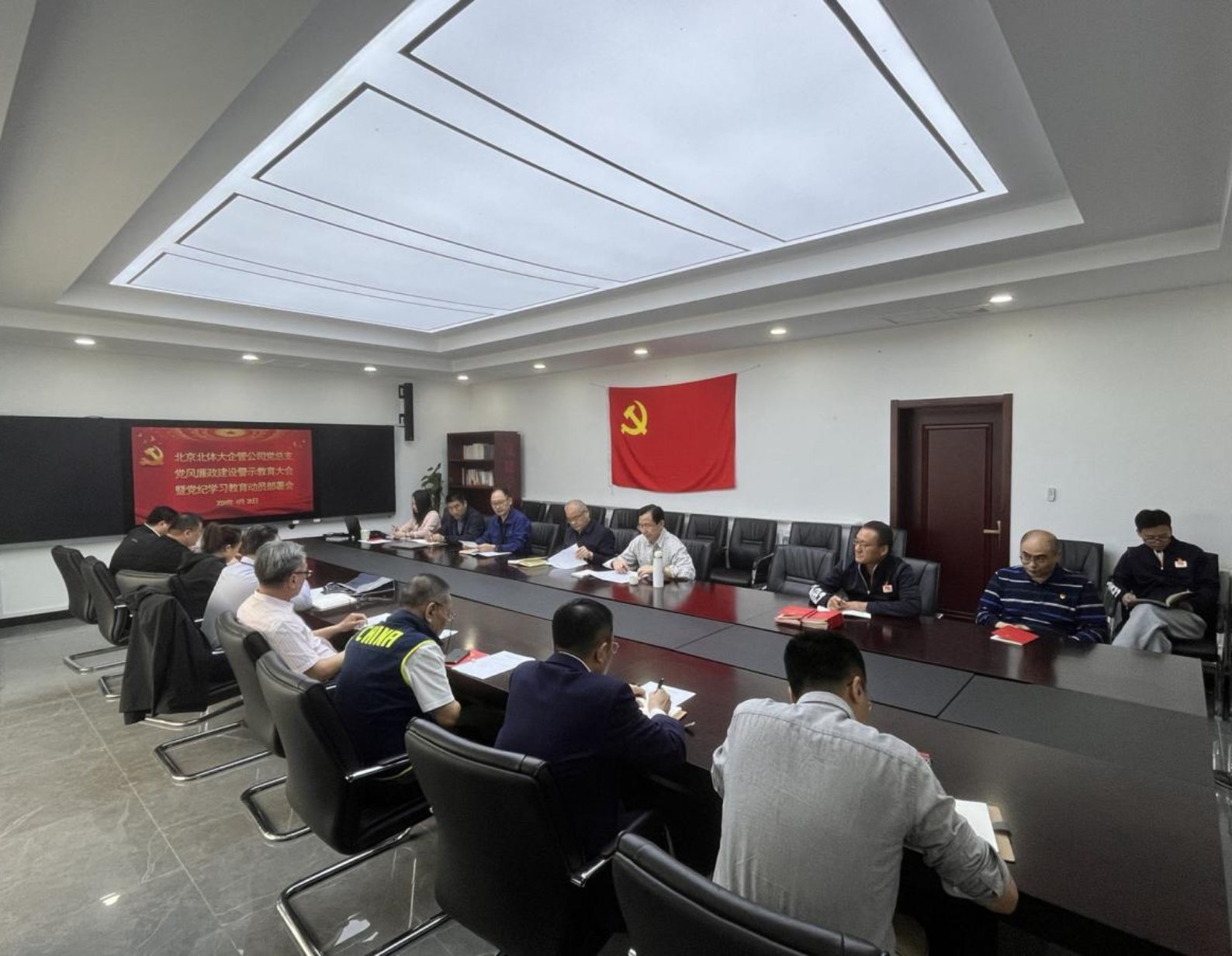 2024年4月26日上午9:30,北体大企业管理有限公司党总支召开党风廉政警示教育大会暨党纪学习教育动员部署会。分管校领导张健副校长,企管公司主要负责人、党总支和各支部委员会成员、党员代表参加会议,会议由企管公司党总支书记谢谦主持。