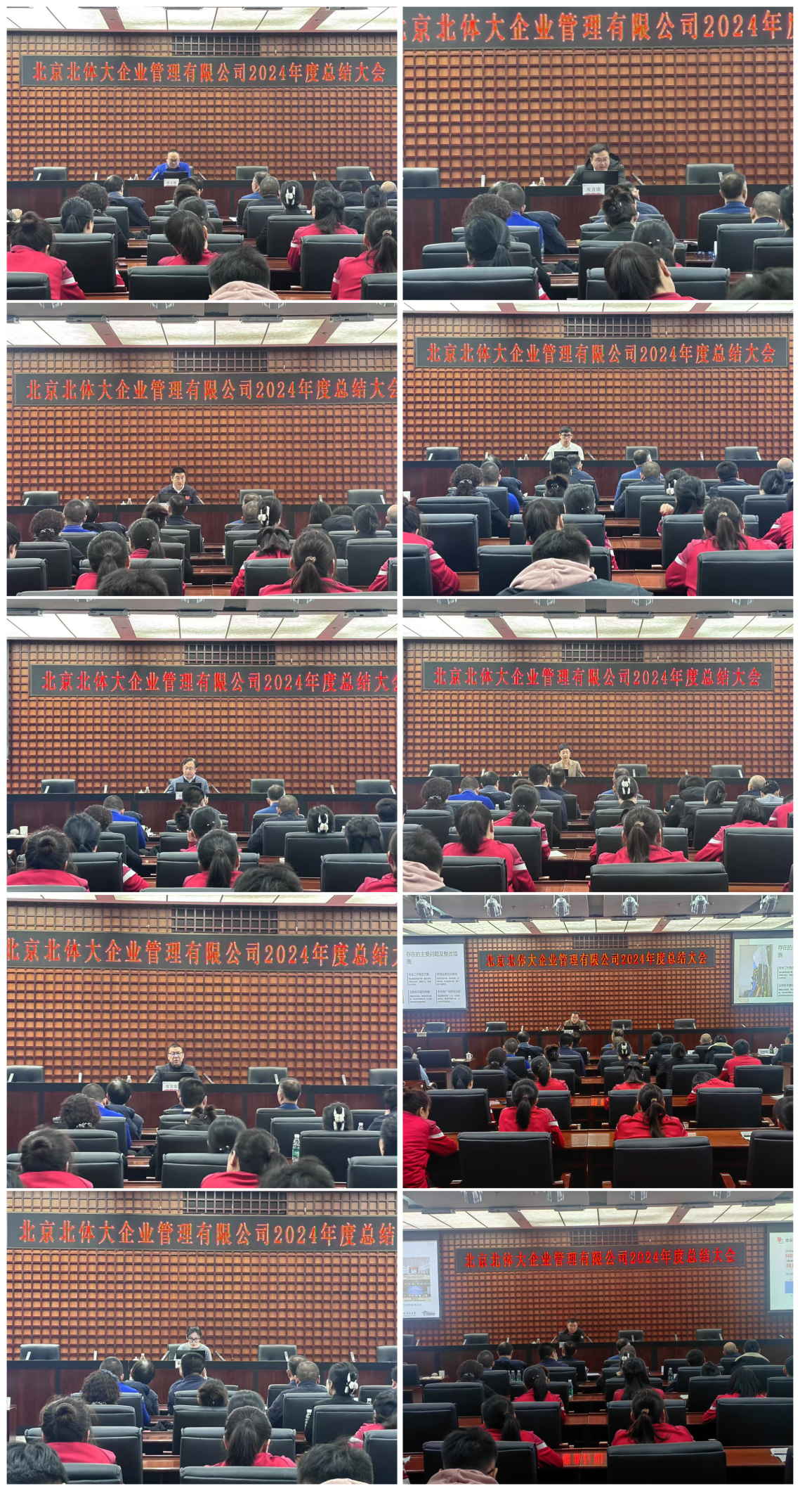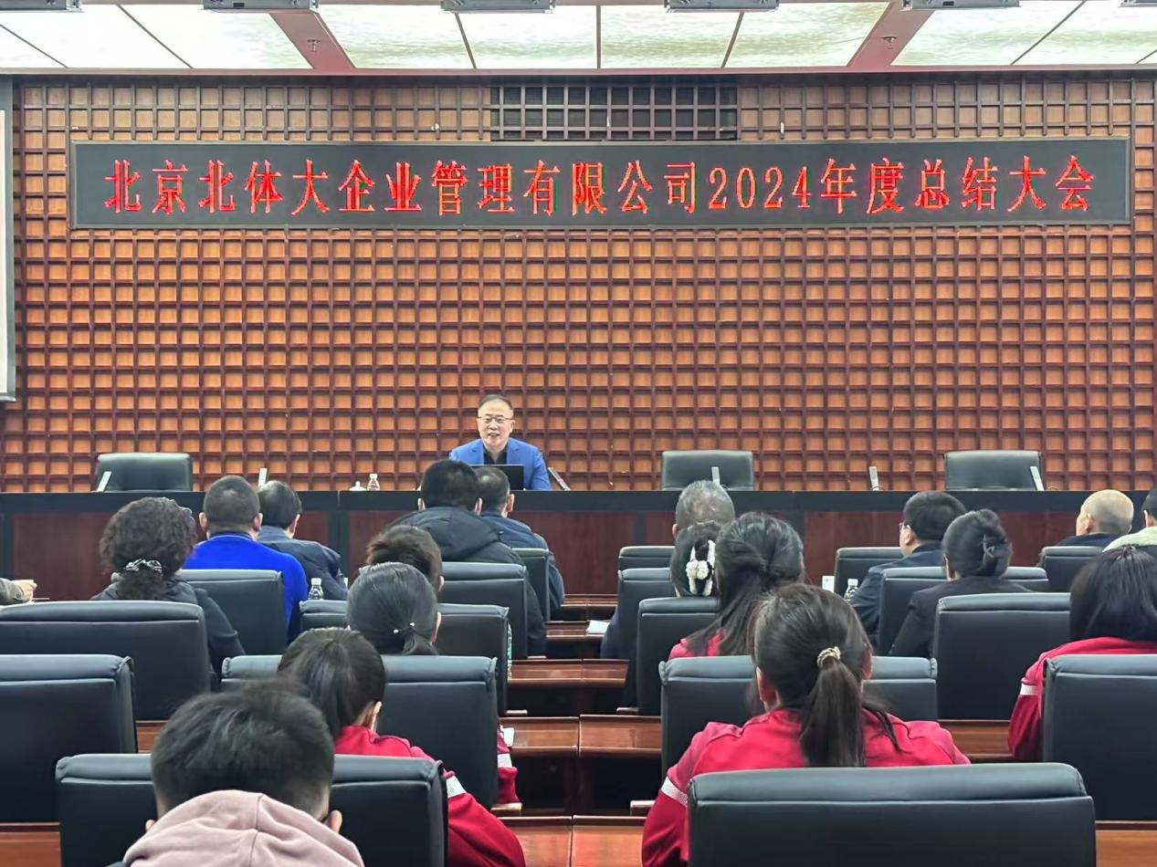2025年1月16日上午9:00,北京北体大企业管理有限公司2024年度总结大会在体育培训中心二层会议室顺利举行。北体大企管公司董事长刘立峰,党总支书记谢谦,以及下属公司负责人、全体员工齐聚一堂,共同回顾过去一年的历程,展望2025年的发展前景。本次会议由工作组组长王旭辉主持。