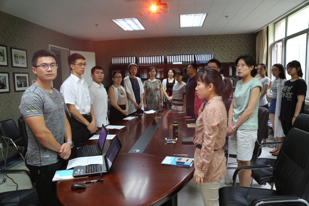 2015年7月8日上午10点英博体育科研中心在402会议室举行2013级新党员入党宣誓仪式,科研中心党支部书记雷厉及教师党员、学生党员以及入党积极分子参加了本次宣誓仪式。