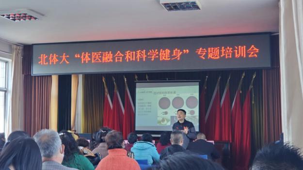 活动的第一天,业务党支部党员包大鹏、梅涛以及运动康复学院谢思源分别以“科学运动是良医”、“中国居民膳食营养”和“老年人常见慢病科学健身方法”为授课内容,为来自代县各乡镇共计80余名乡村医生进行了关于健康、营养和科学健身的知识和技能培训。乡村医生是代县医护体系中的一个重要群体,在缓解乡村医生短缺,为农村居民提供基本公共卫生和基本医疗服务方面具有重要作用。他们倡导“体医融合”,指导农村居民安全、有效、可行地参加经常性体育锻炼,其工作是保障居民健康的有效手段。但乡村医生关于“体医融合”方面的思想观念和知识储备仍严重缺乏,此次针对乡村医生的培训,进一步提升乡村医生知识水平和服务技能,使乡村医生能够将全民健身与全民健康更好融合,发挥1+1>2的作用,助力保障村民健康。