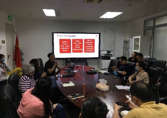 2021年6月4日上午,科学楼307室,中国运动与健康研究院直属党支部开展主题党日活动请支部党员包大鹏老师为大家传达中国科协第十次全国代表大会精神并分享他参会感受