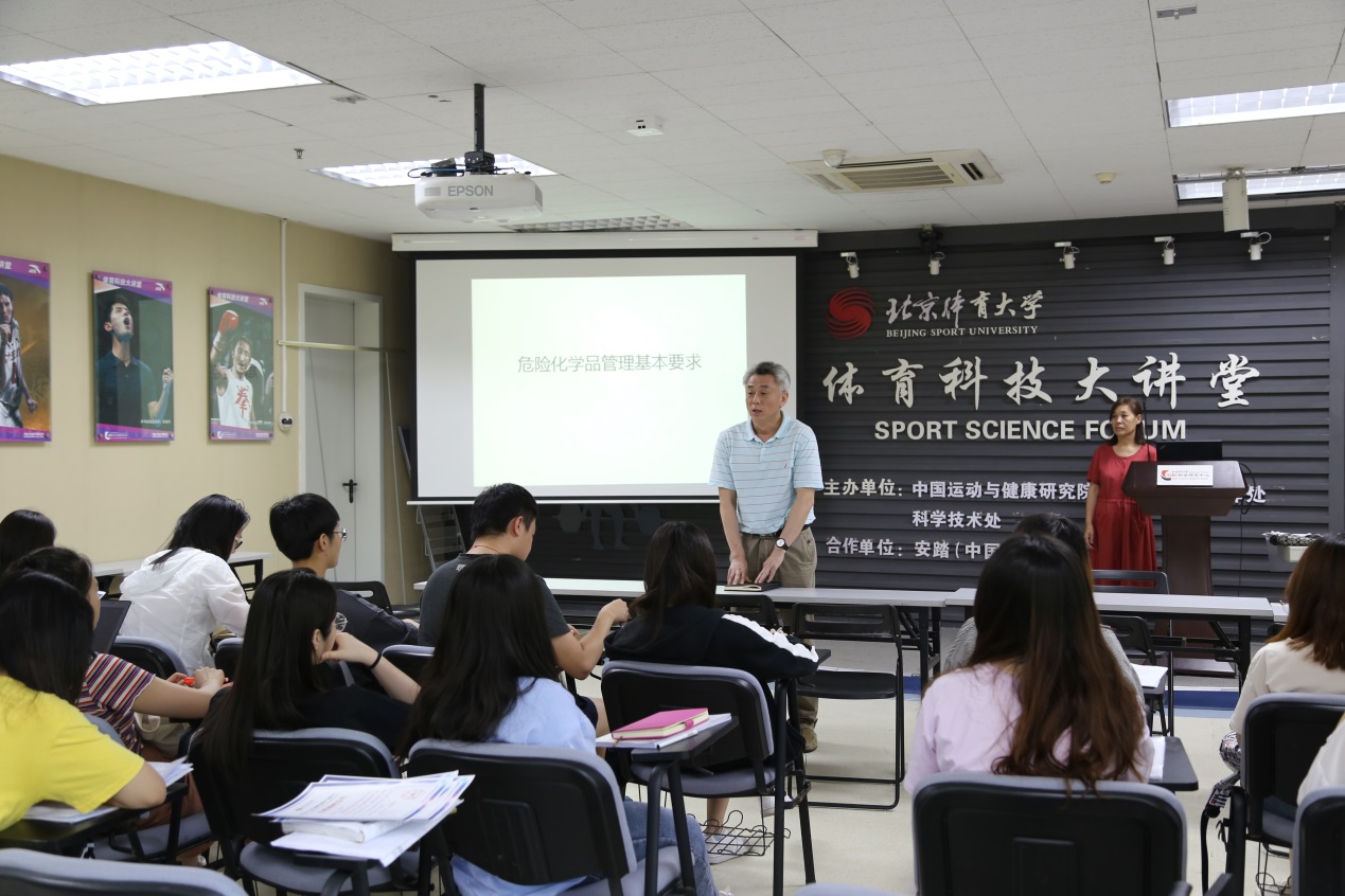 为落实北京市教委及学校相关安全文件要求,针对实验室危险化学品使用、存放、标识、保障等问题,中国运动与健康研究院于6月14日,邀请北京市安监局吴凤琴老师做危险化学品安全教育专题培训。培训由科研平台联合党总支书记李晟主持,师生40余人参加了培训。