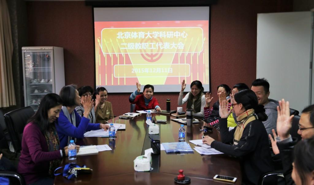 大会首先听取了由科研中心工会组长佟海青作的基层工会工作报告及经费使用情况报告。随后听取了由科研中心副主任雷厉作的2015年科研中心工作报告、2015年科研中心财务报告、科研中心“十三五”规划、科研中心2016年工作计划;她从实验室建设与管理、人才培养、团队建设、交流与合作、运动队科技服务、师生科研服务、社会服务、党建工作、工会活动等方面全面总结全年工作,向全体与会代表详细报告了2015年度收支具体情况及经费的主要用途,并对科研中心“十三五”期间的发展进行了展望,对2016年具体工作进行了规划,提出要努力形成一个科研氛围浓厚、科研覆盖面广泛、科研技术先进、科研队伍强大、科研成果显著的科研平台。随后,会员举手表决一致通过报告。最后,科研中心副主任雷厉同志表示,科研中心工会将继续加强民主管理,履行工会职能,为教职工办实事办好事。