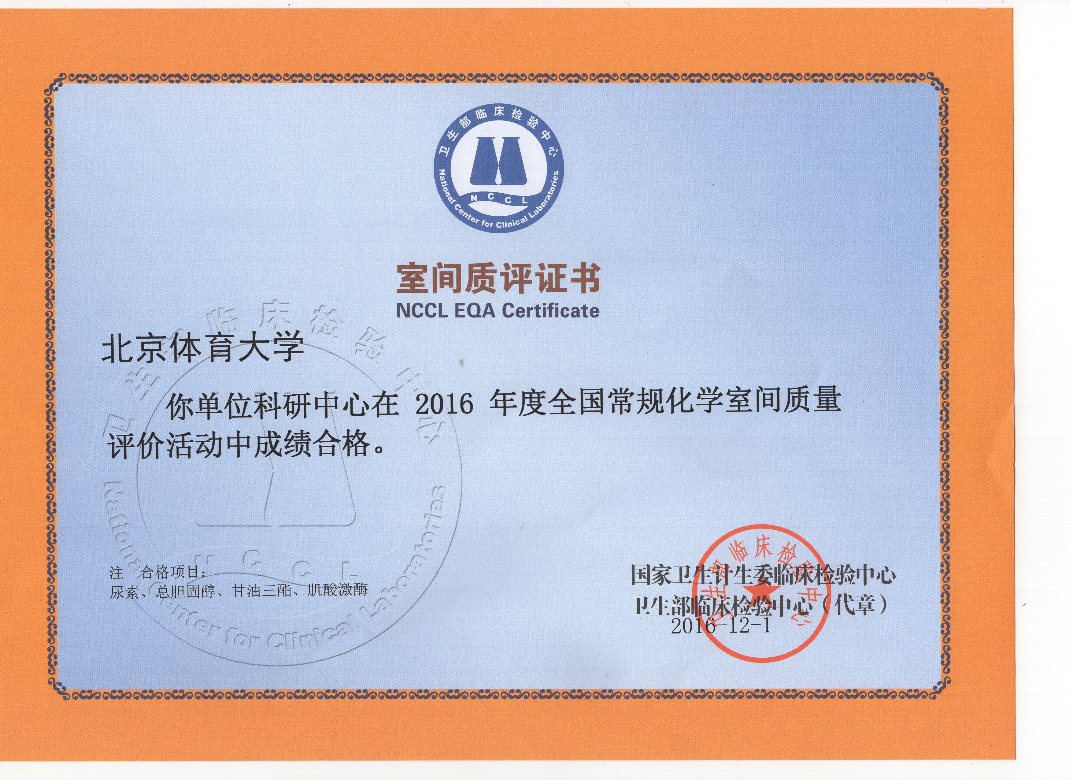 英博体育生物化学实验室在检验室间质量评价活动中合格