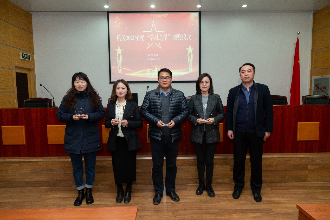 12月15日下午,机关2021年度“学习之星”颁奖仪式在302会议室举行,共有25名机关青年干部获得“学习之星”荣誉称号。机关党委书记孙卫、宣传部常务副部长聂伟、人事处处长孙震、研究生院院长蔡有志、国际交流与合作处副处长吴俊为获奖人员颁奖。