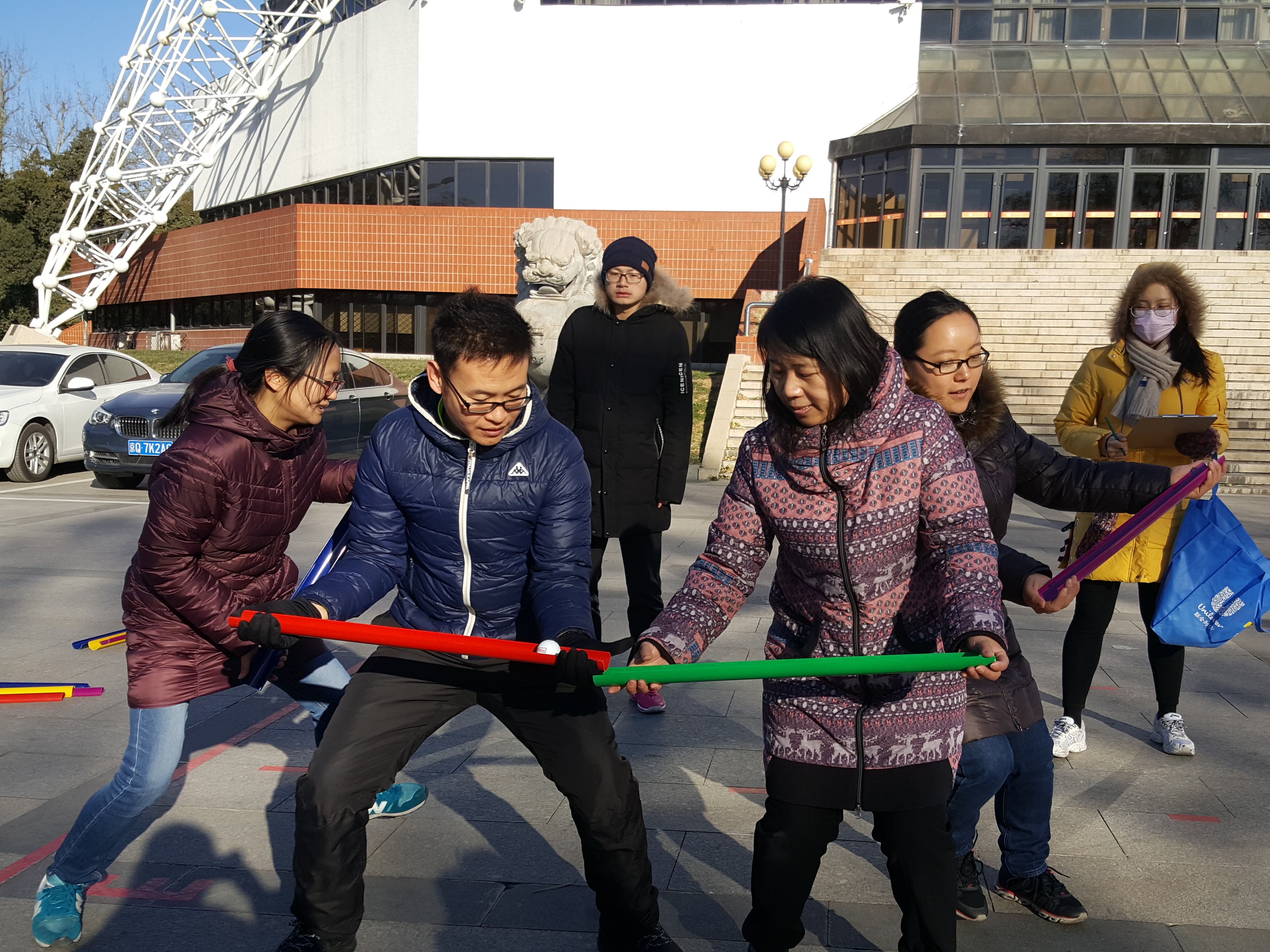 为贯彻十九大精神,广泛开展全民健身活动,增强教职工的健身意识,带头参加全民健身活动,2017年11月27日至12月1日每天上午9点45分至10点15分,机关党委分工会在体育馆南广场举办趣味健身活动,比赛设团队赛4个项目(心有灵犀、护送国球、滚铁环、珠行万里),个人赛2个项目(滚铁环、大满贯)。20个工会小组共计404人次参加了本次健身活动。团队赛前8名(同一工会小组的队伍取成绩最优者记录积分)计入团体总分。根据各工会小组的最终积分,最终评选出一等奖1个工会小组,二等奖2个工会小组,三等奖3个工会小组,优秀组织奖3个工会小组,参与奖、纪念奖若干名。