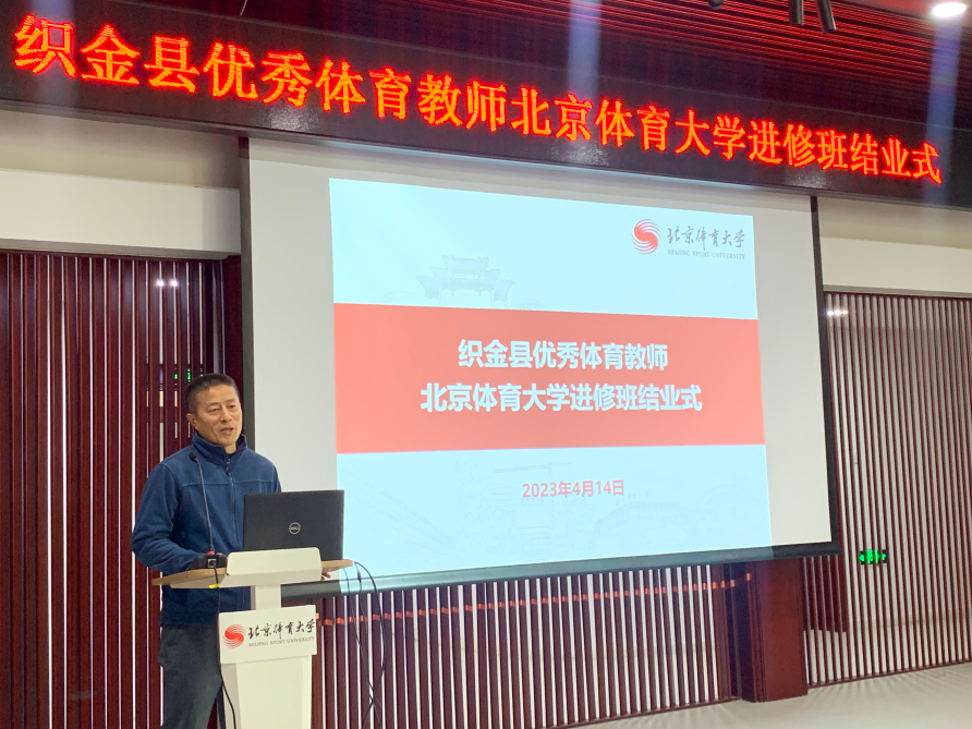 跟岗学习班班主任李耀章对为本次学习班做出贡献的所有老师及同学表达感谢,对四组学员精彩的汇报深表赞许。他表示,经过本次进修班长达一个月的学习,大家互相学习探讨经验,补齐短板,提高了自身教学能力,希望各位学员把在北体学到的知识和技能带到织金。