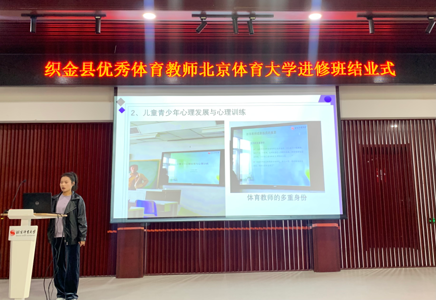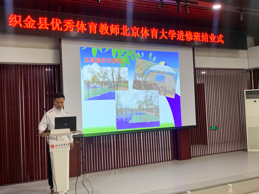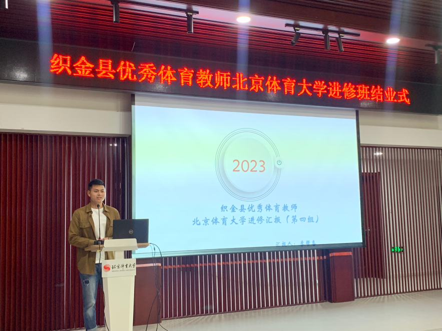 来自织金县化起中学的杨斌老师、来自织金县第二中学的潘婷艳老师、来自织金县第五小学的段中海老师、来自织金县第五中学的李帮喜老师分别代表各自学习小组逐一进行了汇报。汇报中,四位老师们用文字、图片和视频全面展示了一个月来在观摩学习、随班学习、专题讲座、交流研讨中自身专业技能、课堂教学能力、知识领域和实践演练等方面得到的极大提升,理论功底深厚、实践经验丰富的专家教授的专题授课,以及特色鲜明现代感极强的各类体验课,都让大家开阔了视野,增长了见识。老师们一致表示,此次学习班课程安排科学全面、贴合需求,专业性强、水准高,达到了参加培训的预期目标,同时,北体大学风浓厚的校园环境、积极向上的课堂氛围、追求卓越的北体师生都深刻的触动着每一个人,大家回到织金后会把学习到感受到的一并带回各自的学校,分享给其他老师,教授给每位学生,努力提升自身的体育教学水平,为学校体育教育事业贡献更多的力量。