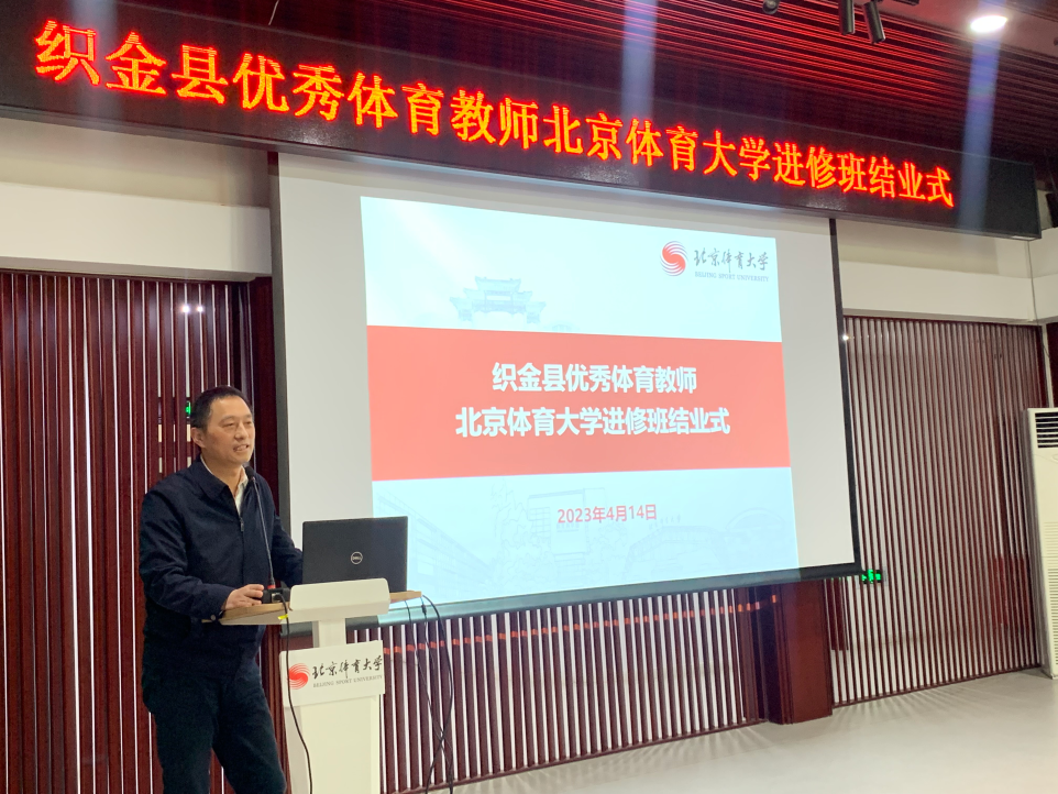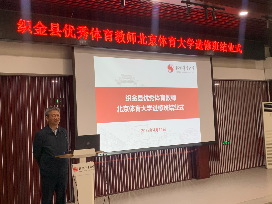 4月14日上午,织金县优秀体育教师英博体育跟岗学习结业式在东平房报告厅顺利举行,会上,学员代表分享一个月来的学习与收获,总结不足和努力方向,为此次培训画上了圆满的句号。校党委常委、纪委书记田志宏、教务处处长章潮晖、教育学院体育教育教研室副教授李耀章出席结业式,会议由机关党委王蒙主持。