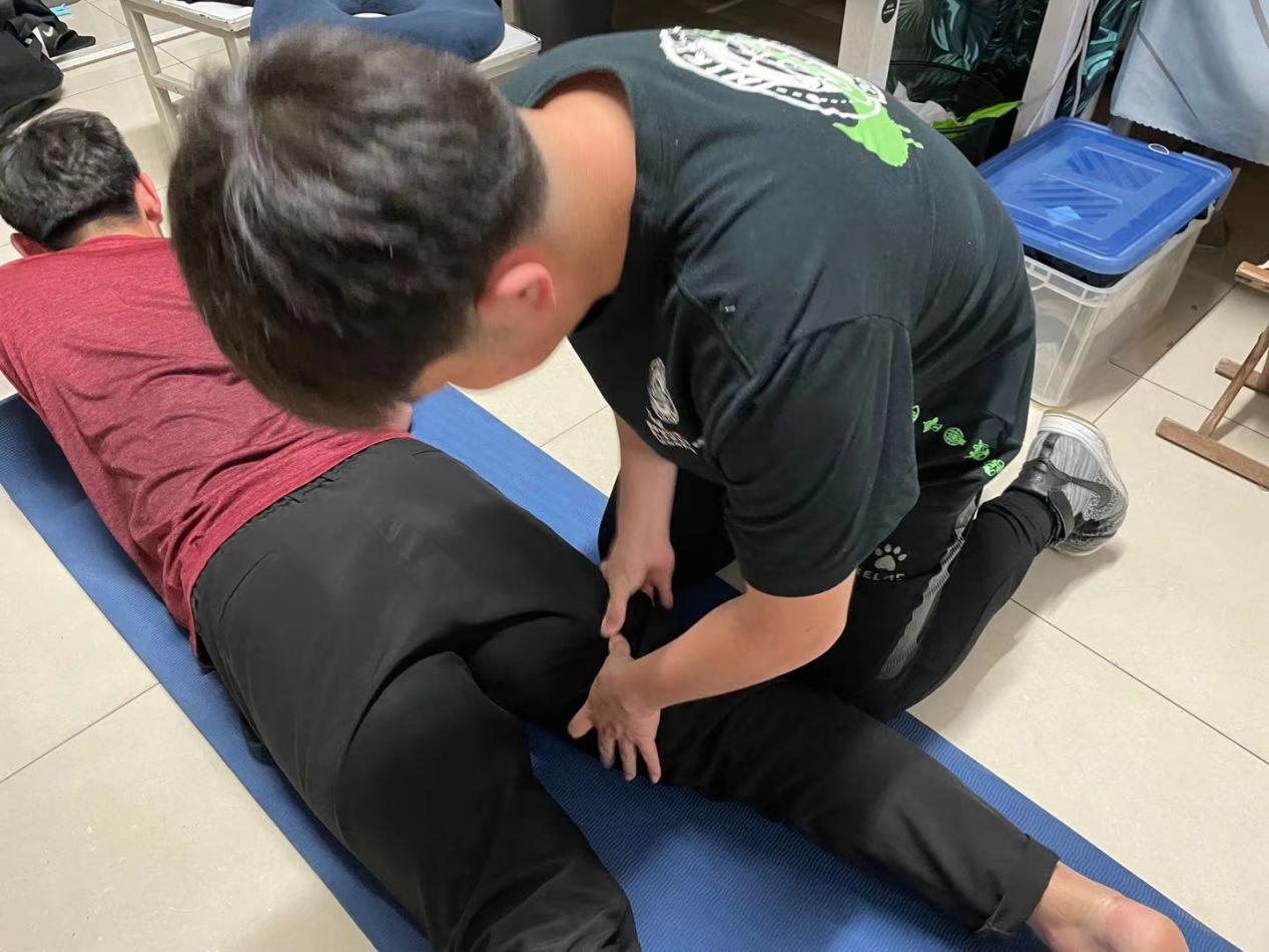 在校团委的推动下,运动医学与康复学院学生会成立急救小分队,57名康复保障志愿者承担了整个周末体育赛事中运动员安全保障的重要职责。他们主动向运动员们科普赛前热身及赛后放松的相关知识,并对同学们的伤病预防提供建议。每一场比赛他们都风雨无阻,专注地站在场边。面对运动损伤,他们总是第一时间上前,有条不紊地开展初步处理。在比赛结束后,他们还会配合校医对受伤运动员进行持续追踪和探寻。在必要时,康复保障志愿者们甚至还会进到寝室为运动员提供康复帮助。