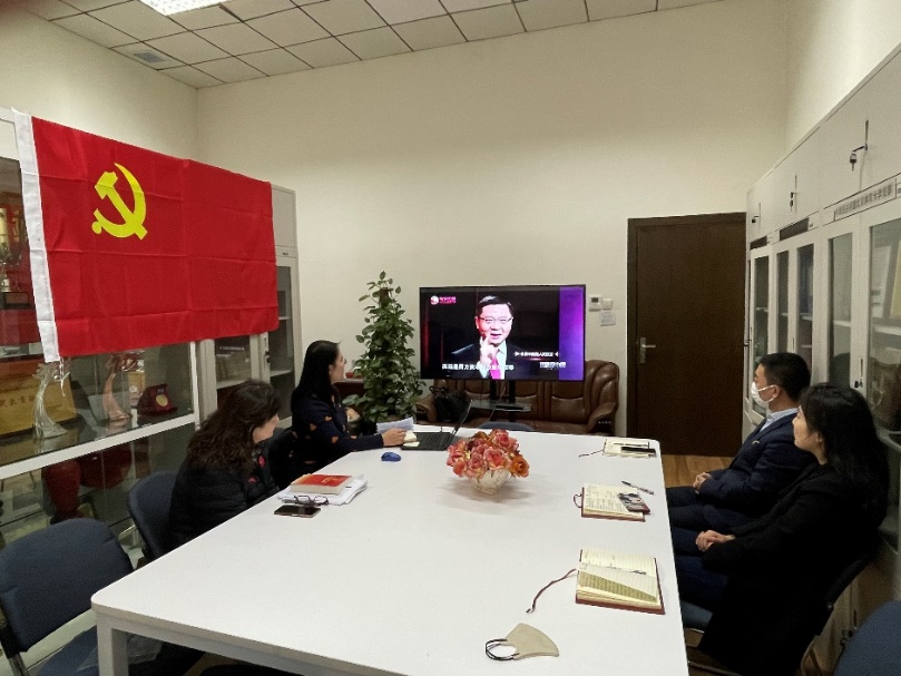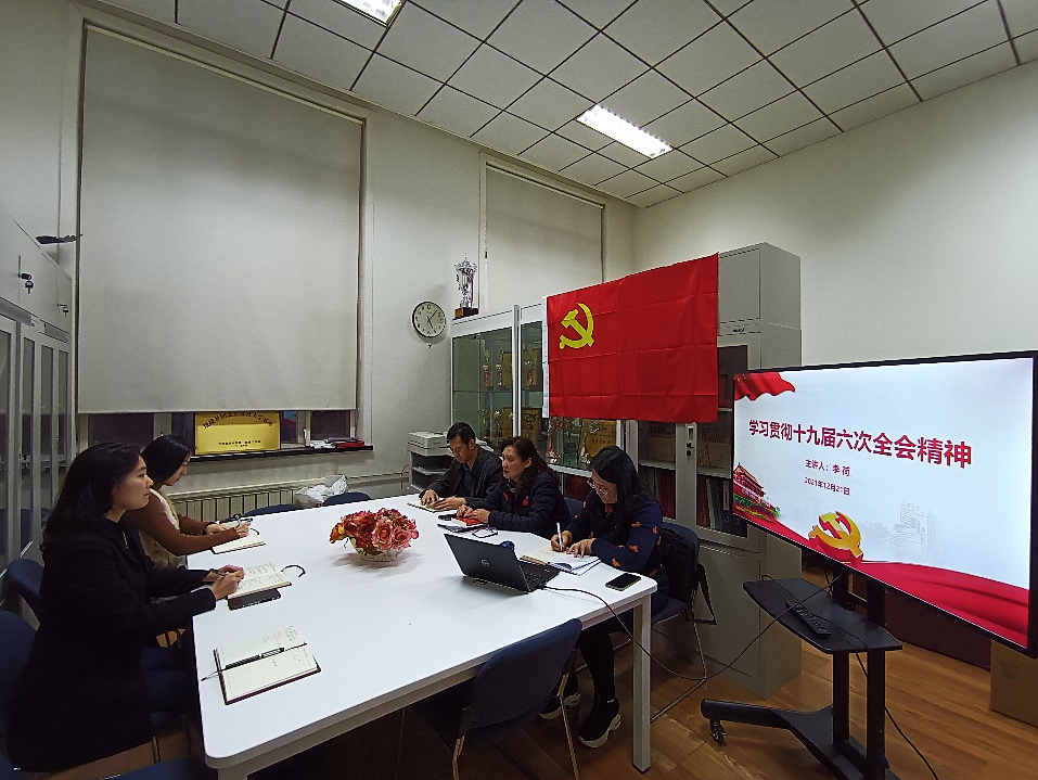 2021年12月21日下午,党委统战部、机关党委办公室联合党支部在北办公楼225室组织开展“学习贯彻十九届六中全会精神”主题党日活动。党支部书记李荷主持会议。