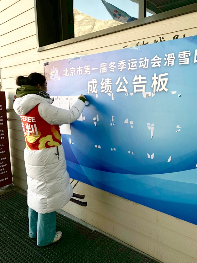12月22、23日,北京市第一届冬运会滑雪比赛在北京延庆石京龙雪场举办。北京冬奥组委滑雪战队第一纵队共派出59名队员,顶岗实践担任裁判工作,其中有3名队员来自我校(体育商学院童文蕴、体能训练学院郭晰哲、竞技体育学院秦世龙)参与了赛道作业、竞赛办公室、检录处等工作。