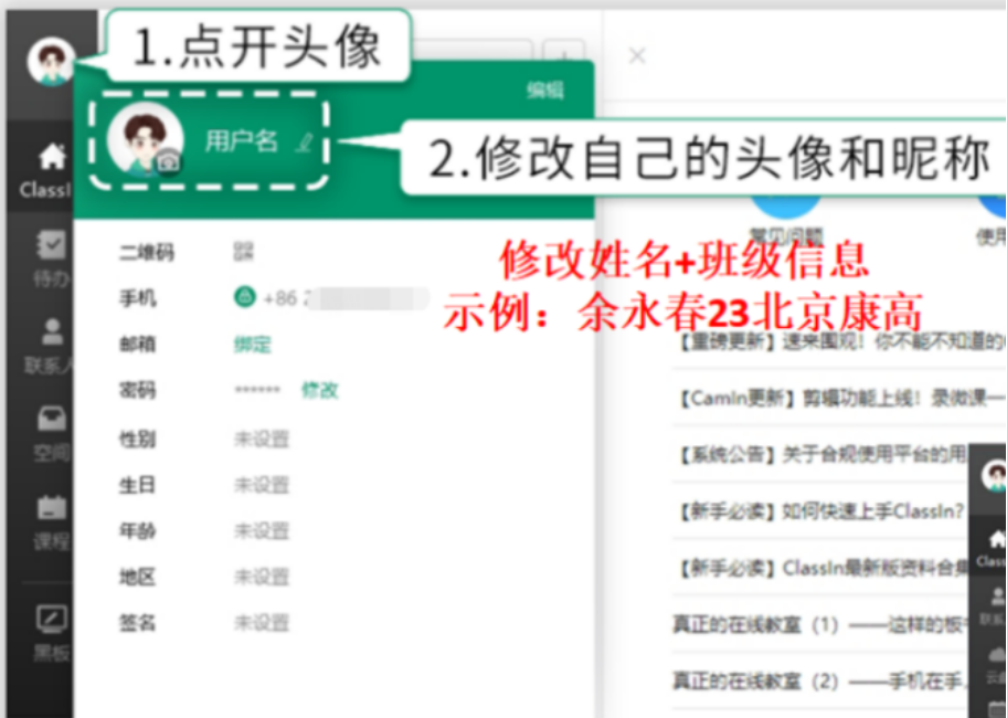 课堂对应班级学习(提醒:ClassIn近期会发送开课短信到各学生手机,请及时关注,如果未收到请及时联系班主任修订自己正确的手机号,手机号是课程学习的唯一账号,请不要随意更换)。