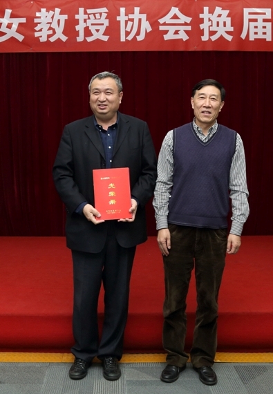 池建副校长被首都女教授协会评为女教授之友,杨桦校长为池建副校长颁发荣誉证书。