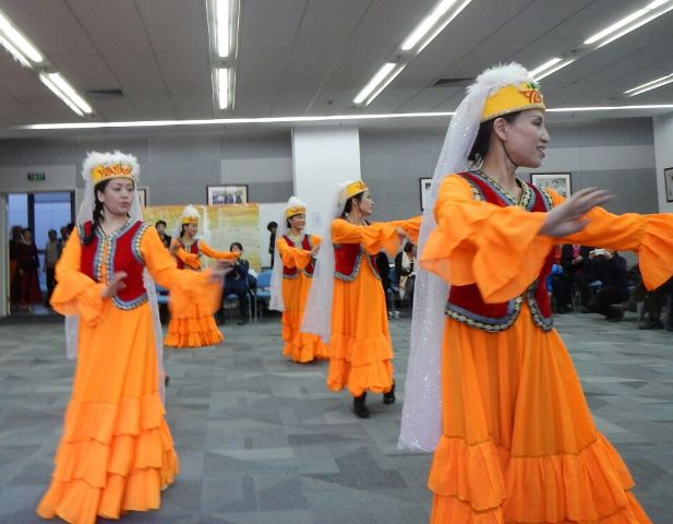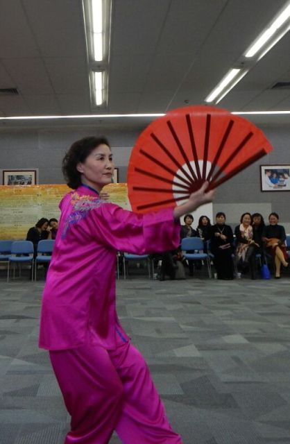 会后举行了迎新联谊会,女教职工们在联谊会上展示了她们在工作之余排练的民族舞、国标舞、太极扇、书法、古筝、时装秀等节目,为大家献上一场精彩的演出。联谊会由体育艺术系教师隋剑爽、学生窦博主持。