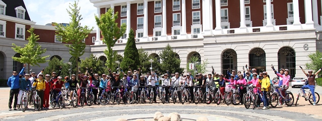 为使我校机关教职工保持健康的体魄和高昂的工作热情,增强整体凝聚力,机关党总支和机关分工会联合组织机关教职工于 2015 年 5月 8 日在延庆县妫河开展全民健身系列活动——户外骑行、拓展。