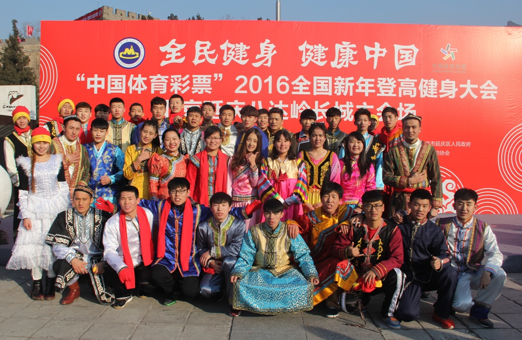 2016年1月1日上午10时,新年群众登高健身活动在八达岭长城拉开帷幕。国家体育总局、北京市委市政府、北京市体育局、延庆县人民政府等相关部门领导出席了开幕式,活动通过中央电视台进行了现场直播。我校教育学院2015级40名来自苗族、壮族、藏族、回族、维吾尔族等民族学生代表在助理班主任高璇的带领下,参加了本次活动。