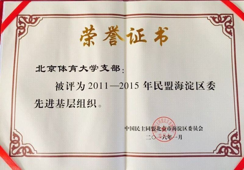 统战简讯——北体大民盟支部获得海淀区民盟先进基层组织荣誉称号
