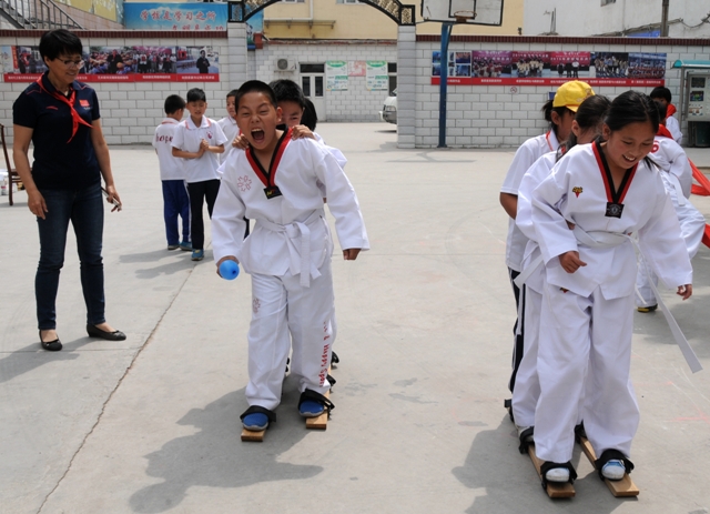 我校民盟支部联合北京几所高校民盟支部多次与房山区民盟总支对接,并对希望学校进行深入摸底调查,针对学校当前的教学和学习硬件设施的配套状况,各支部立即商量对策,并对学校需求和后期发展进行准确定位,发挥各高校优势,确立了助学帮扶主要事项。我校民盟支部捐助了体育图书,并在统战部的大力支持下捐助民族传统体育项目板鞋、铁环、押加等器材,我校教师张怀川亲自对学生进行了指导教学。
