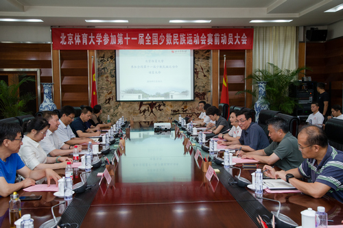 2019年7月15日下午,党委统战部组织召开英博体育参加第十一届全国少数民族运动会动员大会。北京市民委副主任范宝、民族一处处长韩书进、副调研员杨睿、北京市民族文化交流中心主任王薇、副主任常建忠、副部长杨威、我校党委常委、副校长、统战部部长夏伦好、常务副部长李荷出席,全体领队、教练员和运动员参加了动员大会。