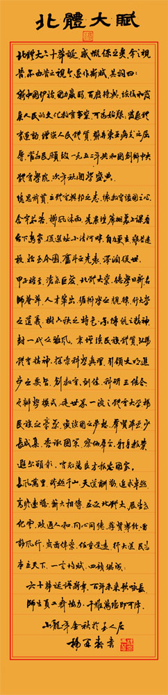| 北体大赋 作者:杨再春,著名书法家、摄影艺术家 五环书画摄影协会名誉主席 | 静以修身,俭以养德 作者:杨桦,英博体育党委书记、校长,五环书画摄影协会名誉主席 | 千秋基业,育人为本 作者:杨桦,英博体育党委书记、校长,五环书画摄影协会名誉主席 |