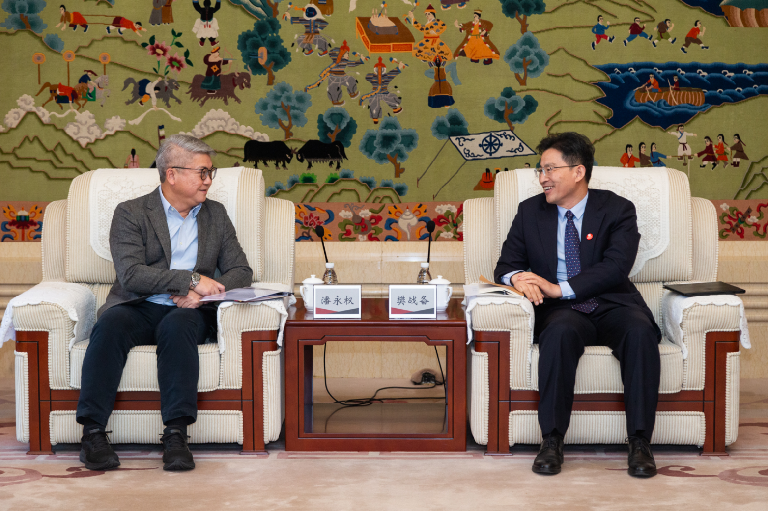 樊战备向潘永权一行的到访表示热烈欢迎。他谈到,潘永权主任既是我校杰出校友,更是推动澳门体育事业发展、促进内地与澳门地区交流与合作的重要伙伴。他表示,粤港澳三地联合举办的第十五届全国运动会将是体育赛事的一次盛会,也将对大湾区融合发展产生重要意义。此次是潘主任履新后首次到访我校,为我校与澳门地区的体育交流开辟了新的交流合作空间。他强调,北体大将一如既往支持澳门体育事业发展,为澳门筹备办在大赛科研、志愿者服务等赛事全阶段的各方面工作提供智力支持和人才资源,助力澳门筹办第十五届全国运动会取得圆满成功。