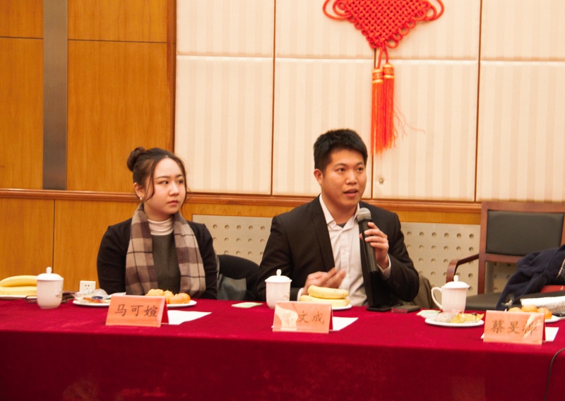 2017年1月10日上午,全国政协副主席、台盟中央主席林文漪在台盟中央机关慰问在京台生,与来自北京十所高校的台生进行了亲切交流。我校台湾博士生陈文成也受邀参与了座谈。