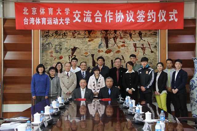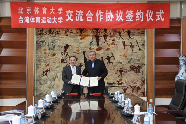 2016年4月15日,台湾体育运动大学林华韦校长一行3人来我校交流访问。池建校长、刘大庆副校长携台湾事务办公室主任王蕾、教育学院院长王华倬、足球教研室教师张搏以及两岸交换生在北办公楼224会议室接待了来宾,并举行了校际交流合作协议签约仪式。自2012年我校与台湾体育运动大学建立校际交流关系以来,在学生互派、教师互访、学术研究等方面开展顺利。此次在前期合作的基础上,两校进一步深化合作内容,签署了为期5年的校际交流合作协议,为延续两校情谊,增进两岸体育学术交流提供了保障。