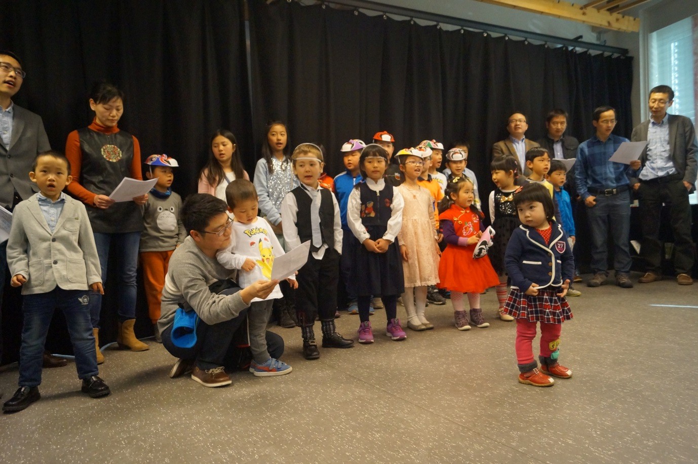 首先,由卑尔根孔子学院教师指导的当地华人华侨小朋友共同表演的中文歌曲《唱脸谱》拉开了本次文化日的序幕。小朋友头戴各种颜色的京剧脸谱,用标准的中文发音进行了演唱。