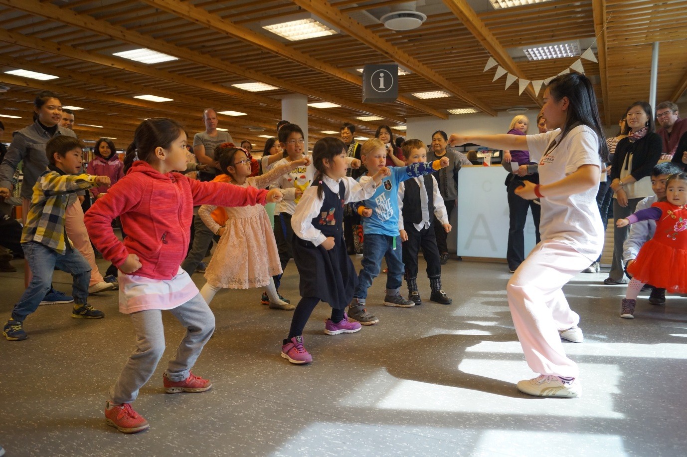 在中国武术的表演结束后,来自孔子学院的汉语教师韩菡进行了一场题为“汉语的魅力——你也可以说汉语”的讲座。韩老师通过深入浅出的语言和与观众的大量互动,让观众从多方面了解到了汉语的魅力,如汉字、声调等等。多名观众在讲座结束后,马上表达了想开始学习汉语的愿望并咨询了卑尔根孔子学院汉语教学的情况。
