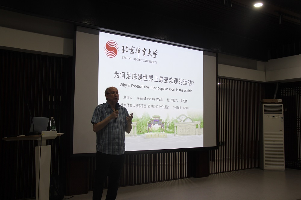 当晚,德瓦勒教授在东平房奥林匹克讲堂对足球院系师生做了精彩的讲座,题目是:《为何足球是世界上最受欢迎的运动》。出席讲座的嘉宾有中国足球运动学院博士生导师李春满教授和亚足联B级教练员培训讲师王本鑫,参加学生的学生为亚足联A级教练员培训班学员代表和足球专项本科、硕士、博士等学生代表。