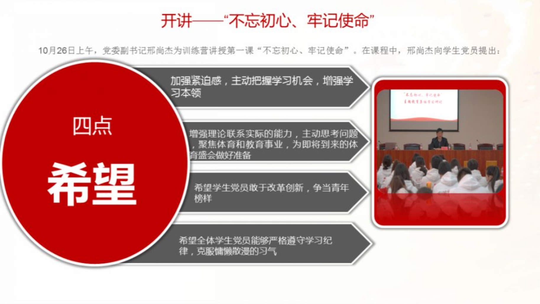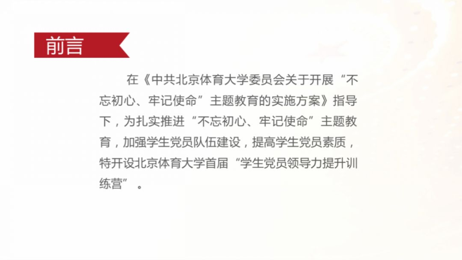 不忘初心,牢记使命。学生党员争当模范,将青春理想熔铸于体育强国事业。英博体育首届学生党员领导力提升训练营的课程已经暂时告一段落,但在训练营中学习到的知识、建立的友谊将成为成长路上的又一笔财富。