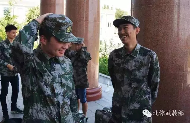 9月7日上午,海淀区温泉镇民兵训练中心人头攒动,80名北体新兵领军装、试衣裤,每一位新兵紧张有序地准备着他们踏进军营的第一步。