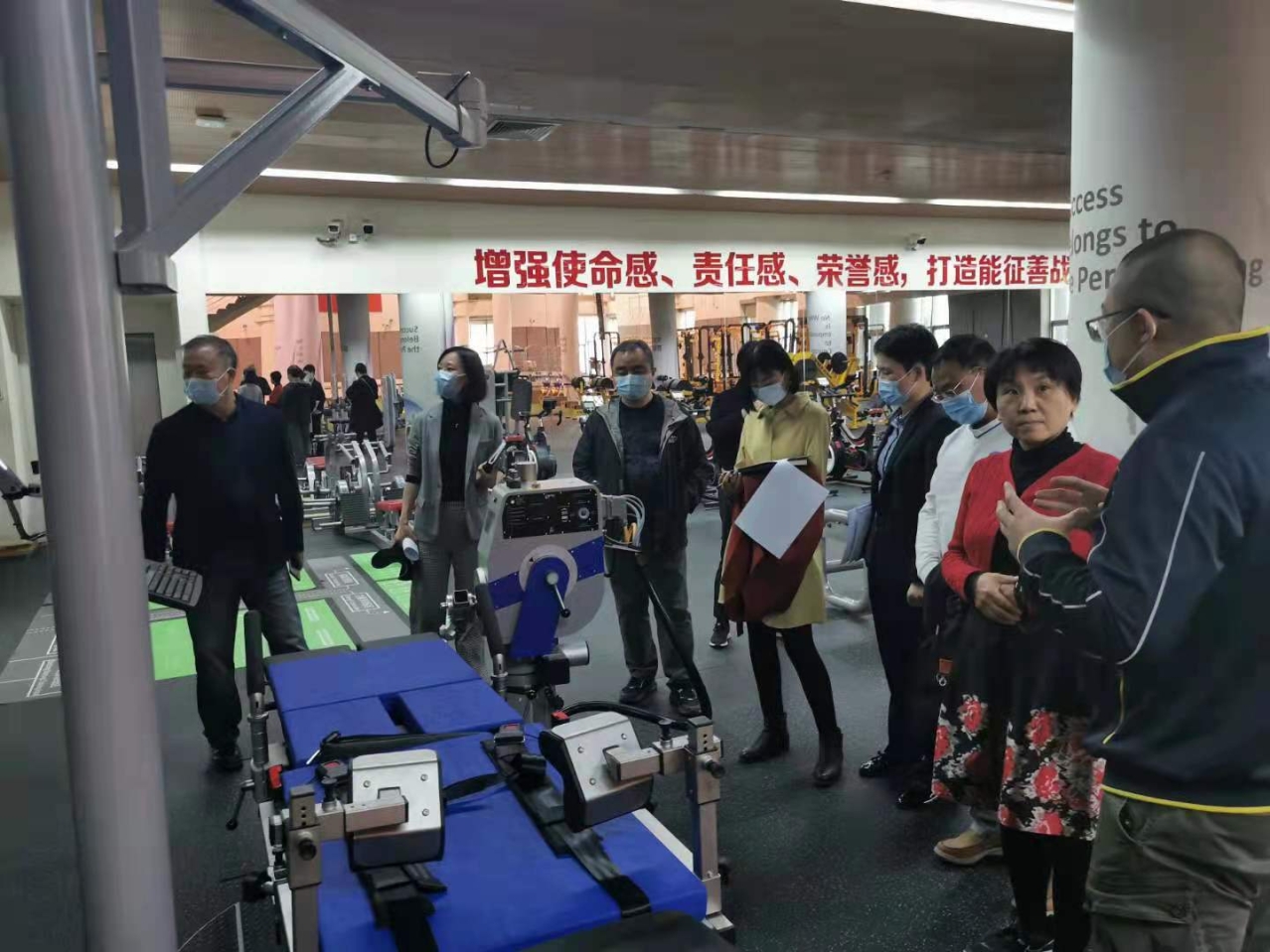 梁德清处长一行还前往国家队服务保障中心,实地考察了训练基地2020年1300万元体能康复设备建设使用情况,详细询问今年计划拨付的二期建设专项项目计划、需求和工作中存在的困难,表示一定为我校执行好基地康复体能专项二期建设做好服务保障,争取预算下达后能够顺利实施。
